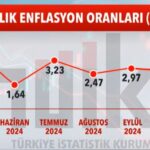 Ekim 2024 itibarıyla, Tüketici Fiyat Endeksi’nde yer alan 143 temel başlık arasında 26’sında düşüş görülürken, 7 başlıkta değişim olmadı. Geriye kalan 110 başlıkta ise artış yaşandı. Bu durum, fiyatların genel olarak yükseldiği, ancak bazı kalemlerde gerilediğini gösteriyor.